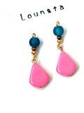 ブルーとピンクの夏色ピアス 夏ピアス ガラスビーズとアクリルビーズ 樹脂ピアス