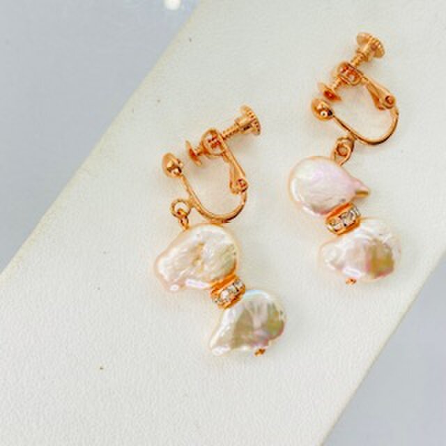 6月誕生石★卒業・入学式【イヤリング】★バロックパール・ピンクゴールド★