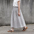 チューリップ柄 綿麻ギャザースカート(ライトグレー)リネン 麻 ロング マキシ ポケット