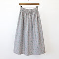 【即納】チューリップ柄 綿麻ギャザースカート(ライトグレー)リネン 麻