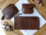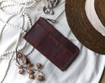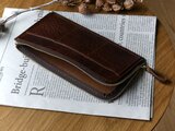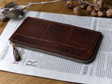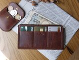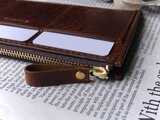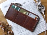 イタリアンレザーのスリムウォレット/フラグメントケース/革財布/チョコ