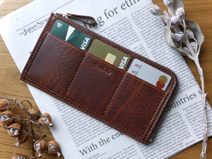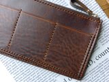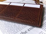 ・カードポケットは外側に付くので、カードに合わせてジャストサイズで作っており、使い始めはカードの出し入れが若干きついかもしれません。あらかじめ型を付けて慣らしておりますので、引っかかり等は少ないです。