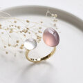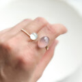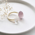 天然石2粒*ピンクパープルカルセドニー×ホワイトシェル+クリスタル フォークリング --Two stones--