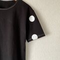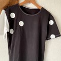 綿100% 切替えTシャツ 前身頃,袖にドットプリント白(身頃シルクスクリーンのドット水玉入れました)