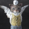 静かな午後、翼を持つ猫と小さな白い小鳥。