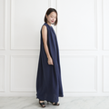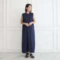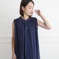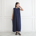 【再販開始!!】サラッと着れる コットン ダブルガーゼ ノースリーブシャツワンピース ネイビー 0696NV