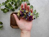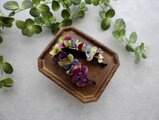 紫陽花のバナナクリップ ■ トリコカラー×ギザギザ花びら ■ パープル×ダークブルー×イエローグリーン