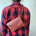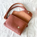 レザーショルダーバッグ、ショルダーバッグとして斜め掛けしたり肩から掛けたり、ウエストポーチとして腰辺りに付けたり、