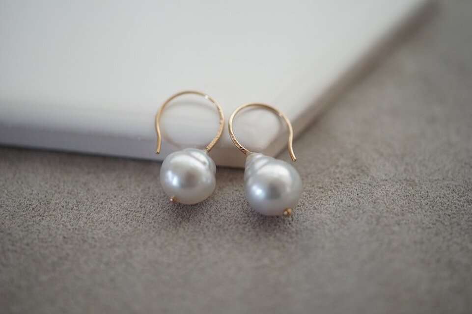 小ぶりの南洋バロック白蝶貝を使ったピアス