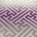 「紗綾形(さやがた)」文様を配し、卍型が連続することで「不断長久(ふだんちょうきゅう)」―すなわち永遠・連綿と続く幸福や平和―を意味します。日本では室町期以降、格式高い文様として多くの礼装・社寺装飾に取り入れられてきました。本作ではこの紗綾形がやわらかな紫苑色のグラデーションに織り込まれ、視覚的にも精神的にも安定感と品格を添えています。