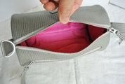 裏側にはファスナーポケット付きです。裏地はピンクです。