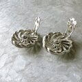 YC23-【 Coro 】コロ・ヴィンテージイヤリング Silver Tone Swirl Openwork Flower