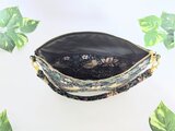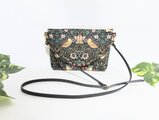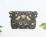 ウイリアムモリスのストロベリーシーフ柄(いちご泥棒柄)ブラック地、厚手の綿オックス地使用の2Wayタイプ持ち手付きポーチです。