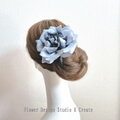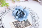 ブルーグレーの大輪の薔薇の髪飾り ブルー 青 バラ ダンス 髪飾り フラメンコ ライブ 舞台 発表会 flamenco