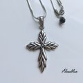 Cross Necklace with Onyx Charm(ユニセックス)オニキス 8月誕生石