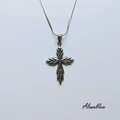 シンプルで洗練されたクロスモチーフのネックレスに、