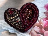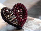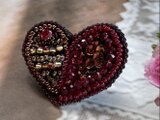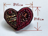 ハートの片方をスパンコール、もう片方をアンティークな色合いの