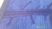 ※ 作業前に水通しをして、ある程度藍色を洗いましたが、水濡れなどで藍色が他の物にうつ