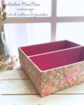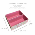 小さな仕切りケースは付いていませんが内部は2分割の仕切りで使い勝手がよく紅茶やお菓子、文具やメガネ、コスメなどの収納にぴったりです。