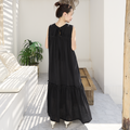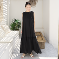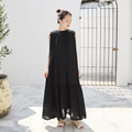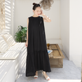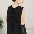 【着丈調整可能】バックリボン ギャザー ライトコットン ワンピース ブラック 0657BK