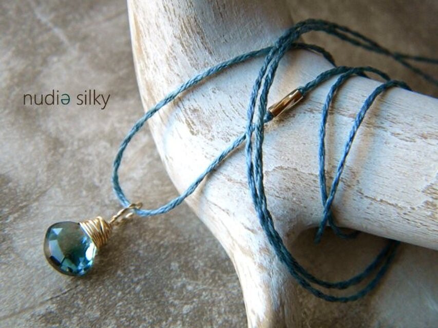 丁寧に編み上げました。シルクが艶やかで細く繊細なネックレスです。
