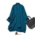 「立体裁断で着やせ!」コットンリネン UV冷房対策 ロングカーディガン 孔雀青 250601-2