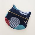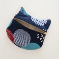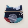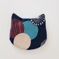 愛らしいシルエットと夜空に咲く花火のような華やかな柄が印象的なねこポーチです。