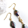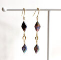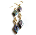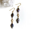虹色がかった照りの綺麗なブラック淡水パールを2連のデザインピアスへ仕立てました。