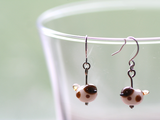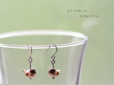 人家の近くで暮らしている身近でかわいい小鳥の「すずめ」をガラスで作りピアスにしてみました。