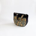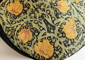 ウィリアムモリス ピンパネル ラウンド型バッグ ブラックオレンジ デニム 外ポケット A4