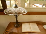 ランプ笠は丸形のブドウ模様のガラス笠です
