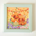 仲良しなたぬきちゃんの穏やかなひとときを描きました。