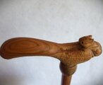 本ウッドステッキはグリップにシマリスを乗せております(一木)。材は木目の美しい桜材でございます。