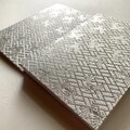 色彩は銀と白を基調とし、静けさの中に凛とした輝きを放ちます。見る角度によって微妙に変化する織りの光沢は、時の流れと共に変わる表情の様に奥行きを感じさせます。