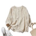 「きちんと感」と「リラックス感」の絶妙なバランス 7分袖ブラウス 麻100% ベージュ 250604-1