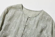 「きちんと感」と「リラックス感」の絶妙なバランス 7分袖ブラウス 麻100% 薄緑色 250604-2