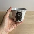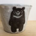クマは陶磁器用絵具で彩色し透明釉、輪郭部分は無釉で使用した土の色です。