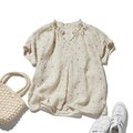 真夏にも涼しく着れる麻のブラウス プリントブラウス ベージュ 250606-2