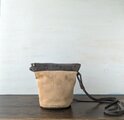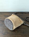豚革 スエードを使った丸底型のポシェット 一点物 です。