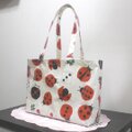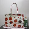 直径6cm程のてんとう虫と5cm角くらいのサイコロに四葉のクローバーが舞う幸せバッグ。