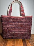 とっても風合いの良い味わい深いバッグです! 布の端を少し出しているのがアクセントになり、両面それぞれ雰囲気が違うので楽しめます! 軽いので、使い勝手も良く、お色味も素敵です!ありがとうございました!