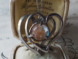 アンティーク ローズカットサフィレット/SilverトーンHeart ブローチ&ネックレス