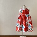 子供 浴衣地ひかえめフレアーワンピース 注染麻の葉朝顔(赤地) 80-130サイズ〈受注製作〉