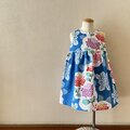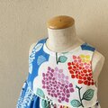 子供 浴衣地ひかえめフレアーワンピース 注染紫陽花(水色地) 80-130サイズ〈受注製作〉