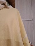 このトップスは、軽やかな素材がもたらす独特の風合いが自慢です。フリーサイズで、ゆったりとしたシルエットは体型を選ばず、気楽に着ることができます。鮮やかなイエローはそのままでも、シンプルなボトムスと合わせても、おしゃれな印象を与えます。