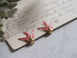 柔らかなピンク色が映える鳥のイヤリング(イヤクリップ)です。