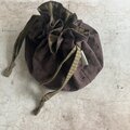 こちらは新作の巾着袋です。くったりとしたシルエットがかわいい巾着袋。丸底の形がポイントの巾着袋です。