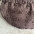 表地はコットンの刺繍生地、裏地にはカーキのストライプ生地を使用してつくりました。