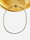 キラキラとしたカットの入った4ミリ玉を使っています。シンプルに仕上がっていますので、1本だけでも、チェーンなどと重ねづけも楽しんでいただけるのではないかと思います。