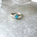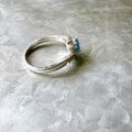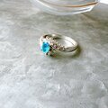 ライトブルーのカットグラスが美しいシルバートーンリング。パライバトルマリンに似た奥行きのあるライトブルーで、光反射で角度によって見せるカラーをお楽しみいただけます。